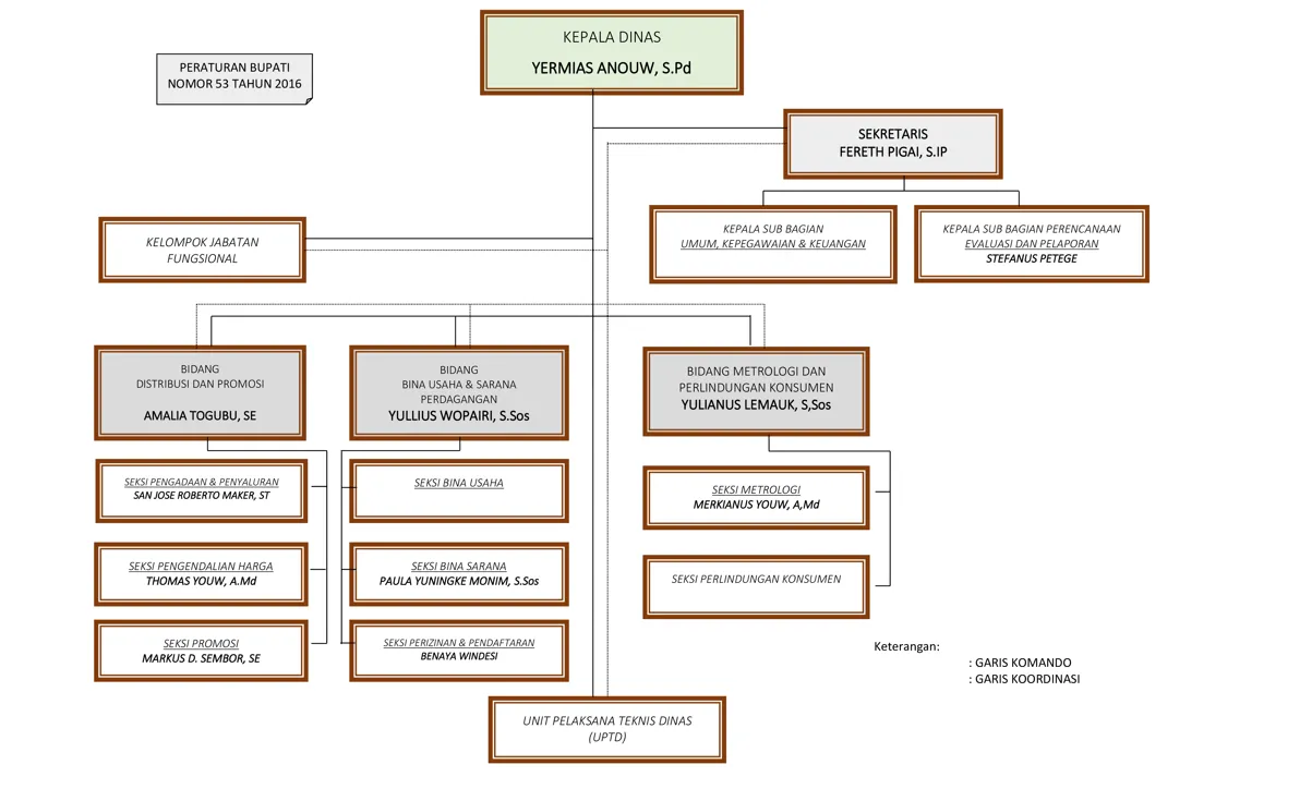 Berdasarkan Peraturan Bupati Nabire Nomor 53 Tahun 2016 Tentang Organisasi Dan Tata Kerja Dinas Perdagangan mempunya Tugas dan Fungsi.